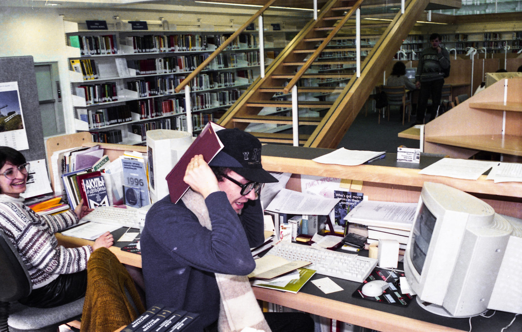 | Библиотека на Вернадского работала каждый день, кроме воскресенья, с 10:00 до 22:00. Но тогдашним (да и нынешним) студентам очень хотелось заниматься там и ночью. Однажды 31 декабря студенты проникли в библиотеку сами и спокойно проработали там всю новогоднюю ночь. Никто из сотрудников не помнит, какая кара обрушилась на взломщиков. Может быть, ее не было вовсе. Для них, как рассказывает Галина Дмитриевна Кармишенская, это был яркий и комплиментарный эпизод ― сплошное стремление к знанию. |